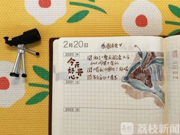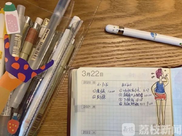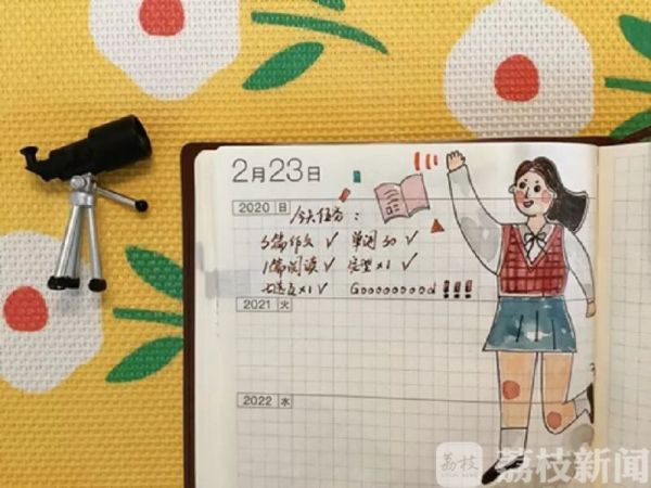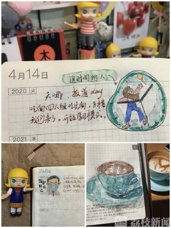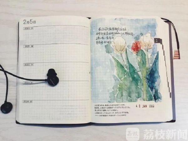 郭雨寒表示:“因为我是广告设计与制作专业的,养成了用绘画来记录生活的习惯。在记录的过程中突然遇到了疫情,从媒体中了解到相关信息,对国家和学校充满信心,所以在手账中一并记录。”