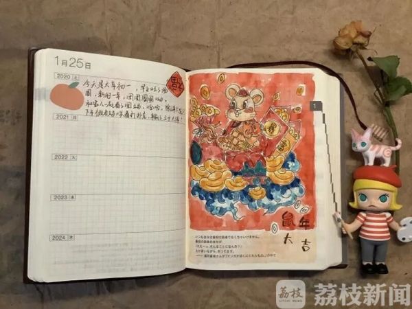 镇江高等职业技术学校广告设计与制作专业的郭雨寒同学制作了一本抗疫手账,整本手账画风精致,温暖治愈。