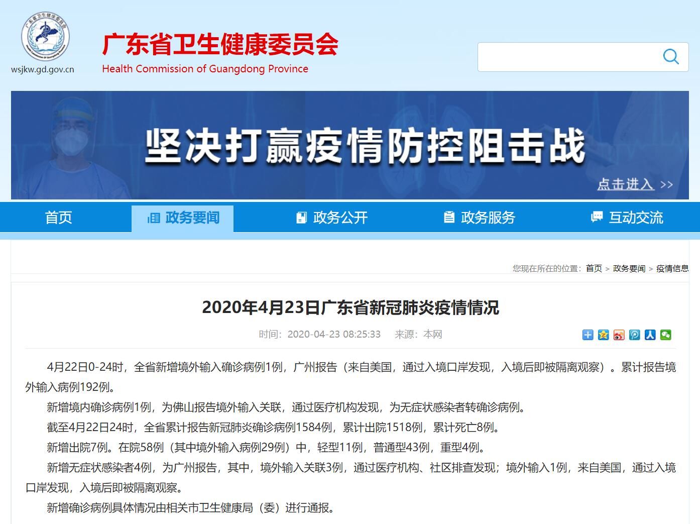 广东卫健委官网截图