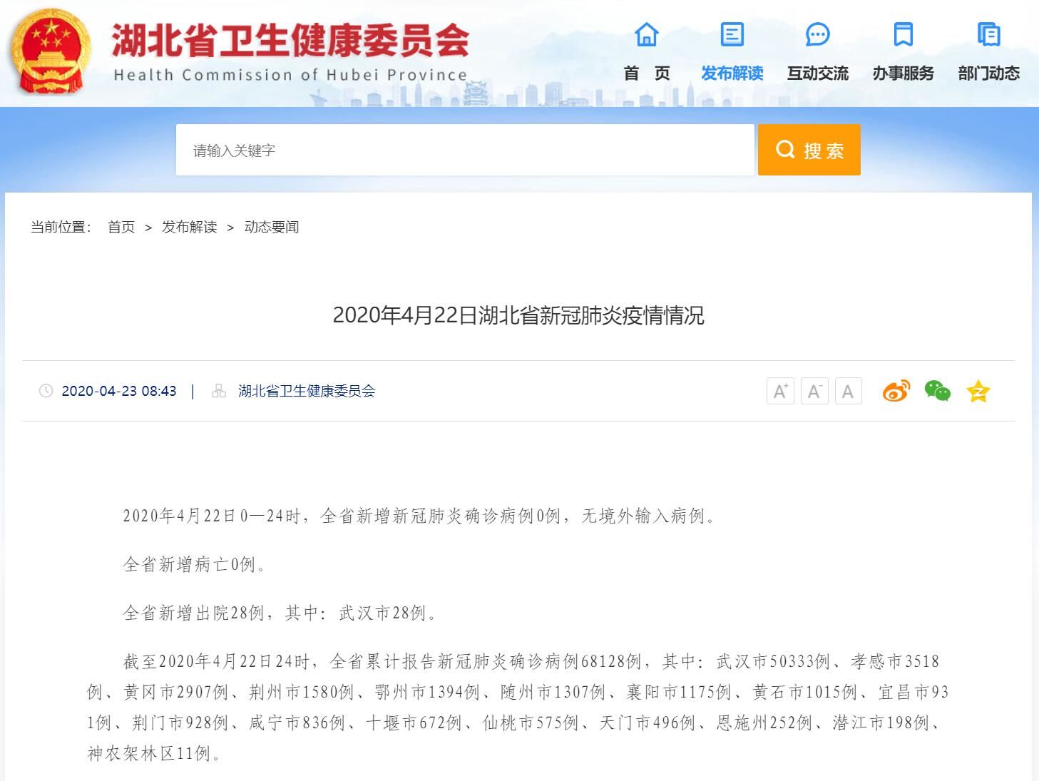 湖北卫健委官网截图