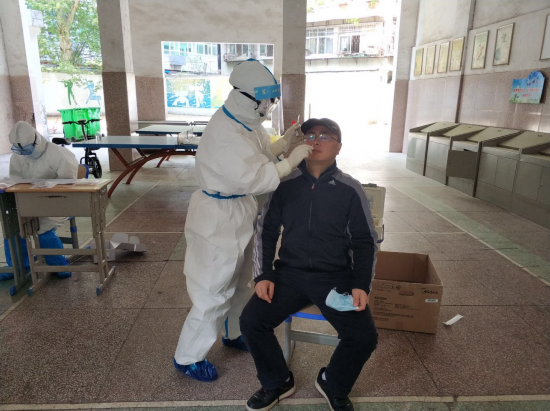 武汉市26中高三教师进行核酸检测 记者向洁 摄