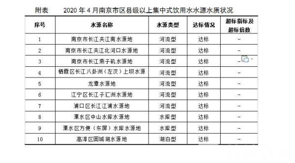 记者获悉,南京市生态环境局日前公布了今年4月南京市区县级以上集中式生活饮用水水源水质状况。结果显示,10个区县级以上在用集中式饮用水水源地均为Ⅱ类水质,达标率100%(达到或优于Ⅲ类标准)。