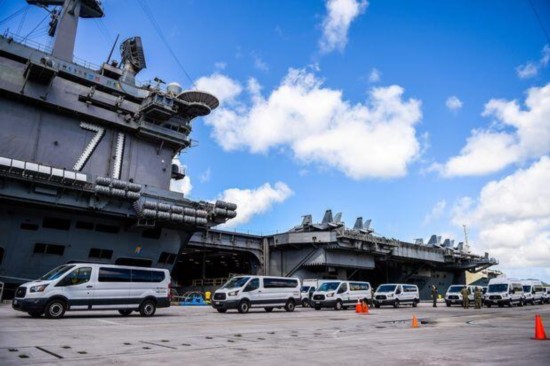 美国海军“罗斯福”号航母的所有舰员都已经接受新冠病毒检测,至少840名舰员的新冠病毒检测结果为阳性。
