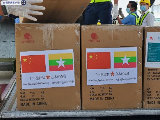 缅甸仰光军区司令员德蓬少将和中国驻缅甸大使陈海到机场迎接,德蓬少将说:“我们会将这批物质尽快的分发到各个需要的地方,同时仰光军区医院的医学专家们也会同中方援助缅甸的医疗专家们,在疫情防范、病毒检测、治疗等方面展开深度合作,共同讨论最优方案。我也代表缅甸人民向中国军方援缅专家表示衷心的感谢,感谢中国政府和人民。”