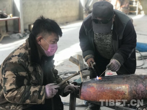 中国西藏网讯 近日,在西藏自治区拉萨市达孜工业园内,叮叮当当的锻铜声又像往常一样响了起来。在园区内的西藏罗占民族手工艺发展有限公司里,戴着口罩的工人分散而坐,焊接、錾刻、抛光,各种工序正在有条不紊地进行。