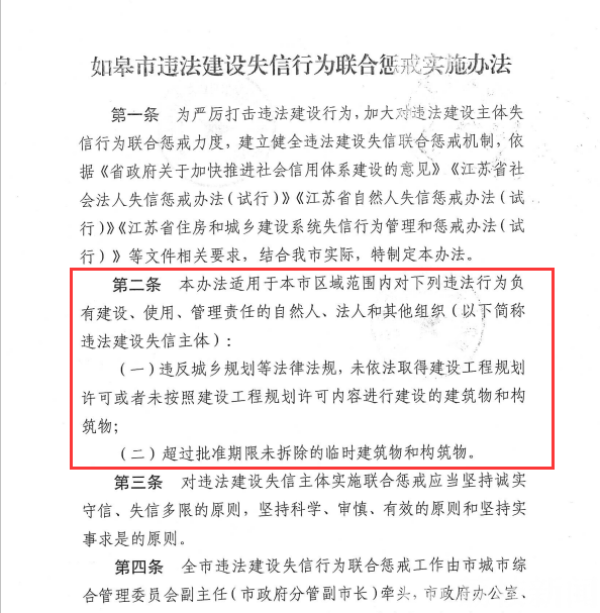 我苏网讯 限制贷款,影响就业,用水、用电、用气受到限制……南通如皋将对违法建设失信行为联合惩戒,一旦失信,处处受限!