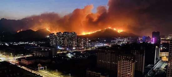 截至4月24日晚,#青岛小珠山山火#从当日中午复燃后,已持续燃烧了约8小时。据@黄岛发布 通报称,因两处起火点山势陡峭,救援人员很难到达,当地继续调用直升机取水灭火。参与救援的队员称,“因为有风,山火从这边传那边,山上一片通红”。