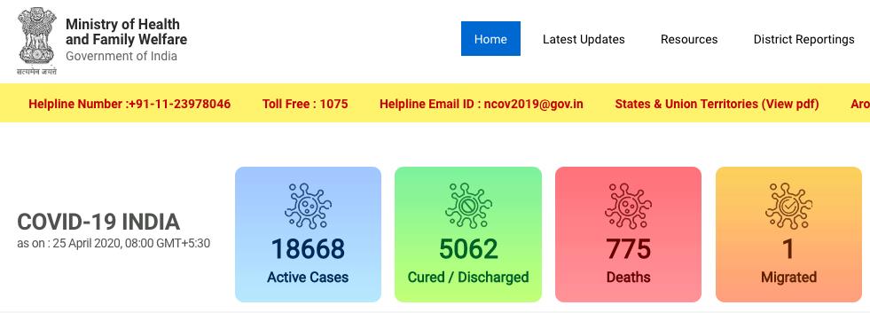印度卫生部官网最新数据显示,截至当地时间25日上午8时(北京时间10时30分),印度全境共报告新冠肺炎确诊病例24506例,其中治愈出院5063例,死亡775例。数据显示,过去24小时内印度全境新增确诊病例1429例。