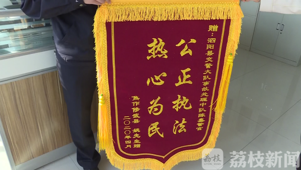 事情已经过去很长时间,案件也已经结案,不成想大货车司机姚某却念念不忘。4月24日,陈鑫收到的从千里之外邮寄的“神秘快递”,正是姚某为感谢民警寄来的锦旗,锦旗上“公正执法 热心为民”八个金黄的大字,正是货车司机姚某对民警陈鑫认真负责的工作态度和热心为民的工作作风点赞!