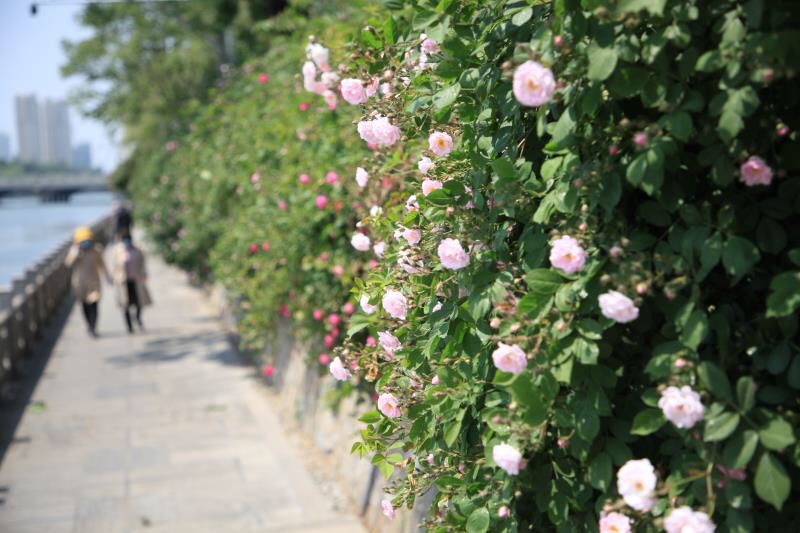 黄河北路岸边的蔷薇花