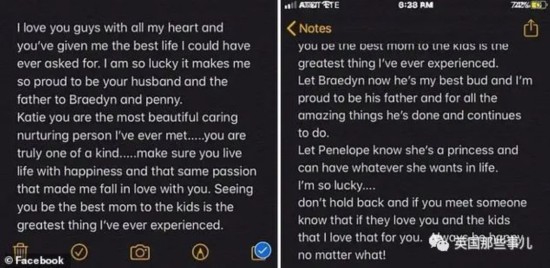 “我全心全意地爱着你们,是你们给了我能够想到的最美好的生活。能够成为你的丈夫,Braedyn和Penelope的父亲,我真的很幸运,也很自豪。