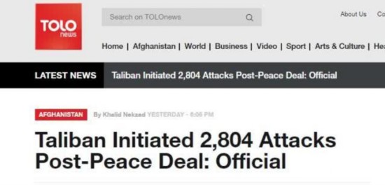 据阿富汗黎明新闻(ToloNews)电视台25日报道,根据阿富汗国家安全委员会办公室(ONSC)周六提供的数据,自2月29日在多哈与美国签署和平协议以来,塔利班平均每天发动55次袭击。