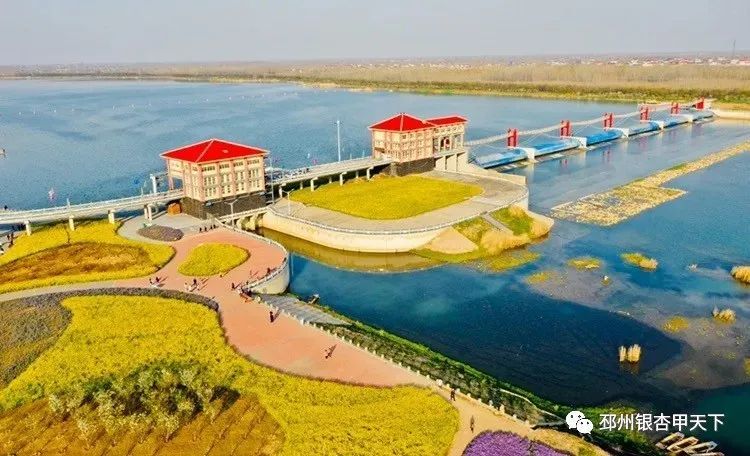 村旁的银杏湖风景区花海花开正艳,气势雄伟的橡胶坝、波光粼粼的银杏湖、挺拔的银杏树……每一处风景都让游客们赞叹不已。