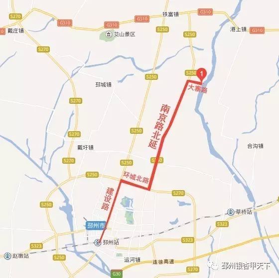 市区出发→新250省道(南京路北延)→大寨路→向东至沂河堰→到达目的地