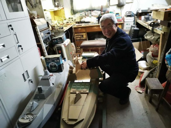 说起这艘辽宁号航母大型模型,麻连登介绍,这是一个10人的航模爱好者团队做出来的。“我参与制作的军舰模型不少,还曾制作过无人艇。无人艇的制作精细度要求非常高,和这次制作航母模型一样,基本都是手工打造。制作模型不是件容易的事,每一次制作都先要根据图纸将船身一片片雕刻出来,再进行打磨、上漆、组装……是一个非常系统的工程。”说起航模制作,号称“新中国第一代航海模型运动员”的麻连登如数家珍。