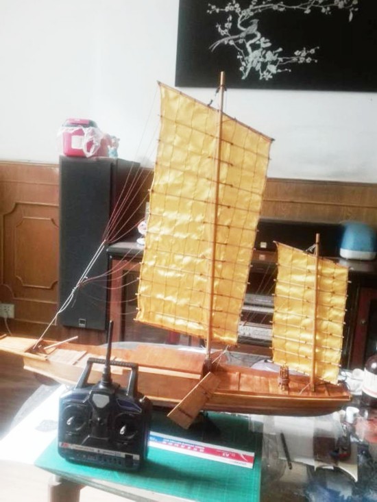 几年前,根据已掌握的材料,麻连登成功复制了一个带遥控装置的瓜洲古渡丝网古帆船,这艘船还参加了一系列外地古船展览。