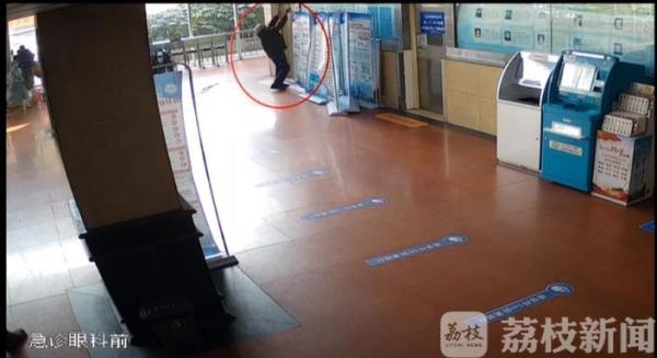 近日,在淮安市第二人民医院急诊大厅,一名醉酒男子在二楼翻越护栏后即将坠落。紧急关头,62岁患者张开华第一时间冲上前,伸出双手托住了坠楼男子。