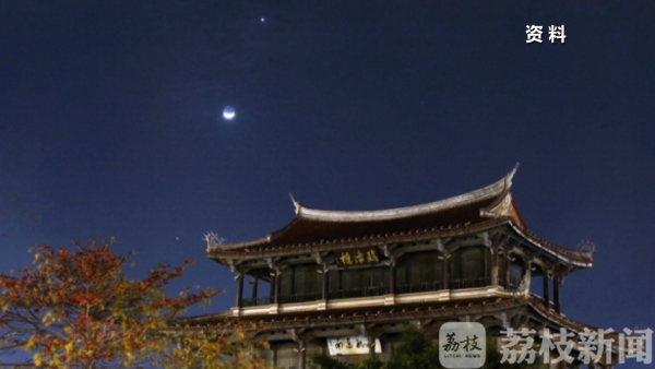 今天江苏大多数地区天气不错,所以晚上肉眼就能观看"双星抱月"的天象。
