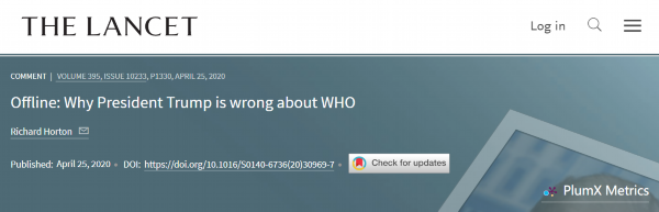 《柳叶刀》主编:特朗普对世卫组织的指控毫无根据
