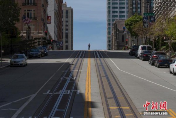当地时间4月25日,美国旧金山街头冷冷清清。中新社记者 刘关关 摄