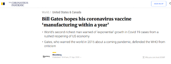 “如果一切顺利,我们有望在一年内实现(新冠病毒疫苗)规模化生产”,香港《南华早报》27日援引美媒称,微软创始人、亿万富翁比尔?盖茨这两天在接受美国有线电视新闻网(CNN)采访时谈到新冠病毒疫苗话题时透露了这样一则信息。