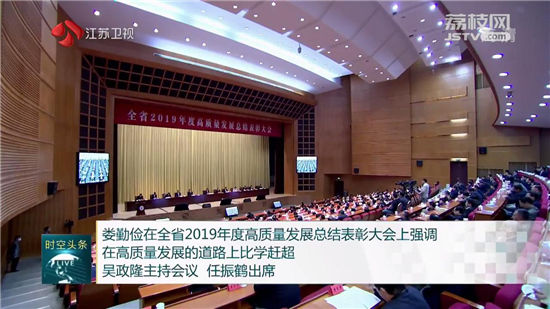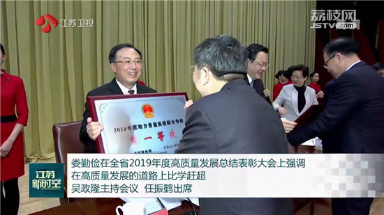 娄勤俭在讲话中充分肯定了去年全省高质量发展取得的显著成绩,代表省委、省政府向受表彰的单位表示祝贺。他指出,去年全省上下牢牢抓住高质量发展这条主线,坚决贯彻落实中央和省委各项决策部署,开拓进取、攻坚克难,推动“强富美高”新江苏建设取得了新的进展,高质量考核的正向激励作用、发展引领作用、综合促进作用不断显现。通过综合考核,全省上下贯彻新思想新理念的自觉性进一步增强,推动高质量发展的效益进一步显现,干部担当作为、狠抓落实的主动性创造性进一步提升,争先进位、竞相发展的浓厚氛围进一步形成。