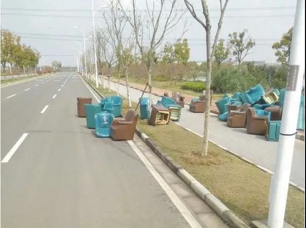 称中惠路与常州交界处有偷倒破旧沙发现象