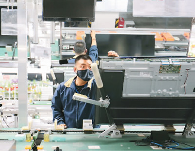 在冠捷显示科技(咸阳)有限公司,60%的产品通过中欧班列和海运销往欧美地区。图为员工正在组装液晶电视。