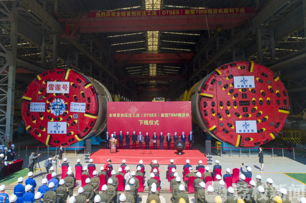 两台全球首创压注工法新型硬岩掘进机——“雪山号”和“雪莲号”今天(4月28号)在中交天和常熟基地成功下线。