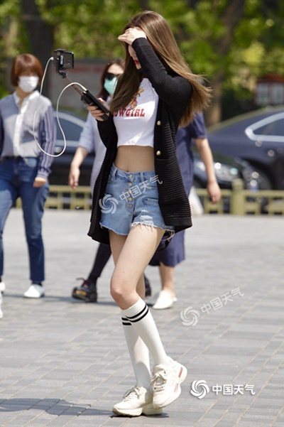 28日,北京晴热,爱美的姑娘换上清凉装。(图/王晓)
