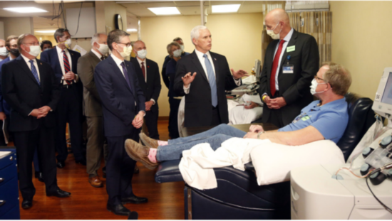据多家外媒29日报道,在带队视察明尼苏达州一家医院时,美国副总统彭斯格外“与众不同”:他没有戴口罩。而他正在探望的,是一位曾确诊新冠肺炎的病人。
