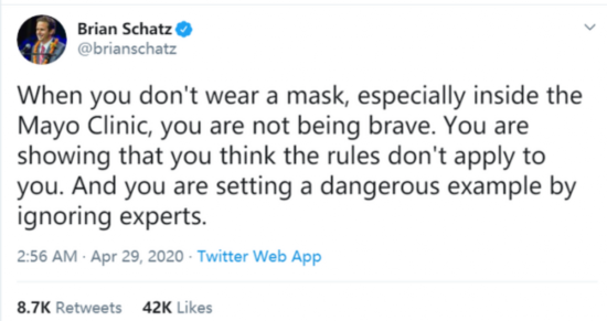 然而,不少人对这番狡辩并不买账。美国民主党一位议员发文批评道:“这不意味着你勇敢,只能表现你不守规定,还带了一个不听专家话的坏榜样。”