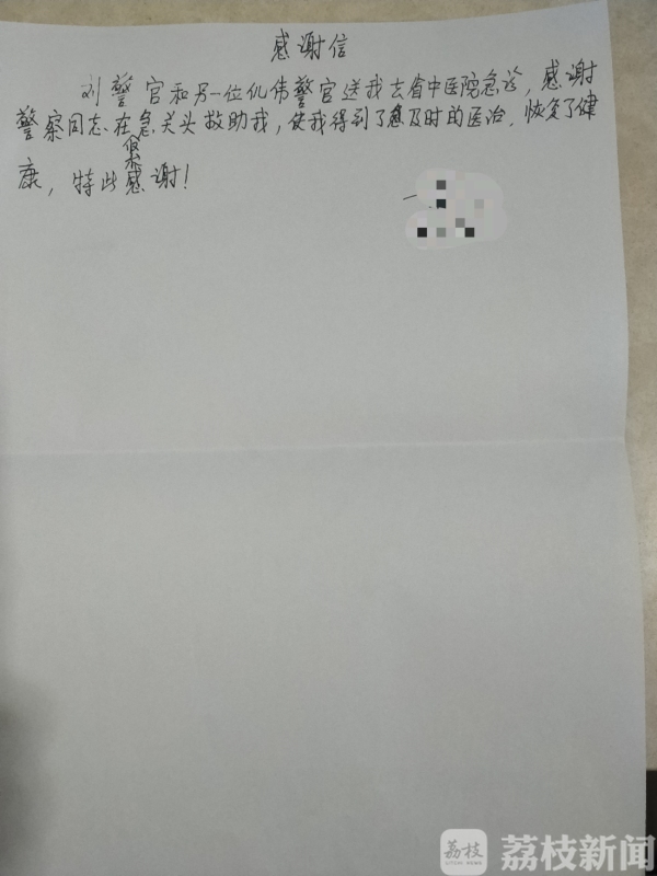 鲁女士康复出院了,心系感激的她来到警务站,为民警送来了两封亲笔的感谢信,对民警两次救助自己和母亲表达了万分感谢,民警也表示这是我们应该做的。