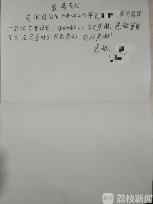 4月29号上午,家住南京秦淮区的鲁女士,给民警送来一封感谢信。这是这个月里,鲁女士送来的第二封感谢信,而民警先后帮助了他们母女。