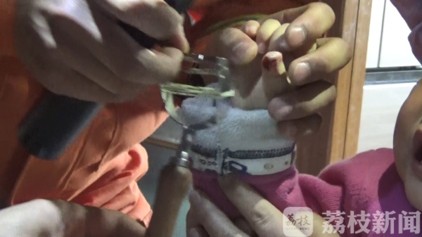 昨天(4月28日)下午5时30分左右,扬州市宝应县某花园小区一名1岁多女童的右手指被锋利的削皮刀片紧紧夹住,情况紧急。孩子的父母赶紧拨打了“119”求助。当地消防部门接到报警后,立即赶赴现场紧急施救。