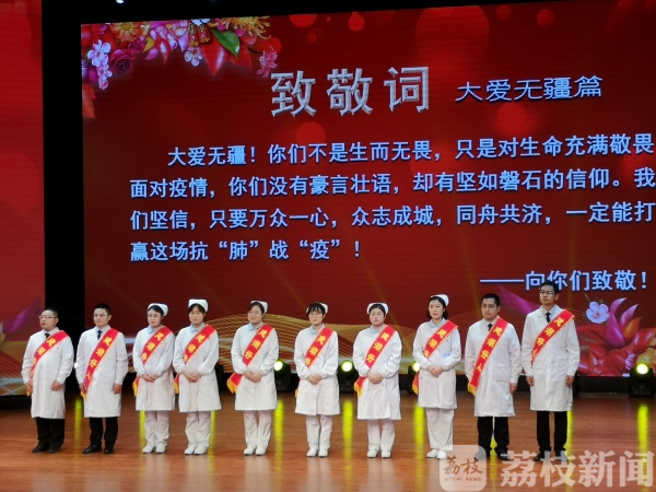白衣做战袍,逆行写担当。建湖县人民医院仅用了两个小时的时间组建了10人的援鄂医疗队,他们与时间赛跑、与死神抢人,用实际行动兑现了出征时许下的誓言。“当看到第一批医疗队支援的时候,我们所有同事都做好上前线的心理准备,有的还主动取消春节休假。”在现场,建湖援鄂医疗队的队长李红苗说,“我们也怕被感染,但我们没有退缩,因为医护人员的责任让我们变得勇敢。”