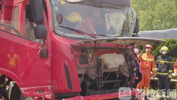 4月30日上午10点30分左右,扬州市扬溧高速扬州西站附近发生货车追尾事故,有人员被困。当地消防部门接到报警后,立即赶赴现场进行救援。