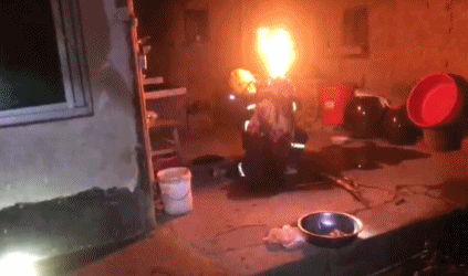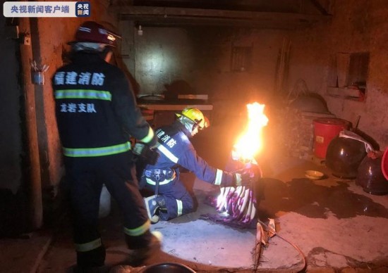 4月27日晚上,福建省长汀县一处民房内的煤气罐因软管老化起火,消防员不顾危险,将喷着火的煤气罐抱起,转移到空旷地带进行处置,最终化险为夷。