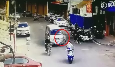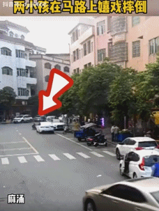 他见状立即停车,打算下车把孩子扶起。可他准备打开车门时,便见到一名妇女在车前快速经过,并迅速来到倆孩子面前查看。