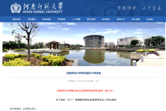河南大学在《通知》中指出,原则上,在汴师生员工(包括临时用工人员,下同)不允许离汴,返校学生不允许出校门,非在汴学生不允许外出旅行。