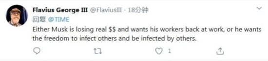“要么是马斯克的确面临资金亏损问题,(所以)希望他的员工重返工作岗位,要么是他希望获得感染他人和被他人感染的‘自由’。”