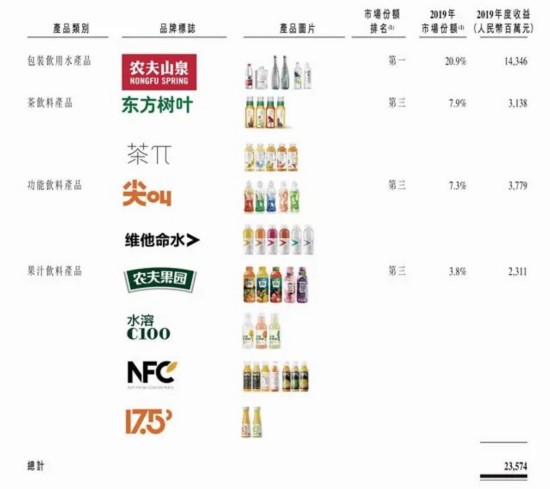 4月30日,农夫山泉在港交所官网披露了招股书。根据弗若斯特沙利文报告,2012年至2019年间,农夫山泉连续八年保持中国包装饮用水市场占有率第一。以2019年零售额计,农夫山泉在茶饮料、功能饮料及果汁饮料的市场份额均居于中国市场前三位。