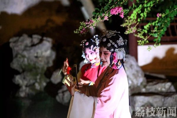 华灯初上,夜色撩人。苏州网师园里,咿咿呀呀的弹唱响起,带领游客走入江南梦境。一曲过后,穿过庭院,再欣赏一出《游园惊梦》,放眼望去,亭阁倒影中流光溢彩、水袖袅袅,姑苏之夜如梦如幻。