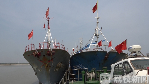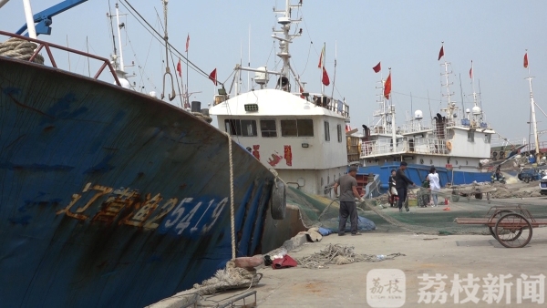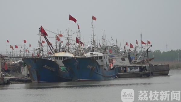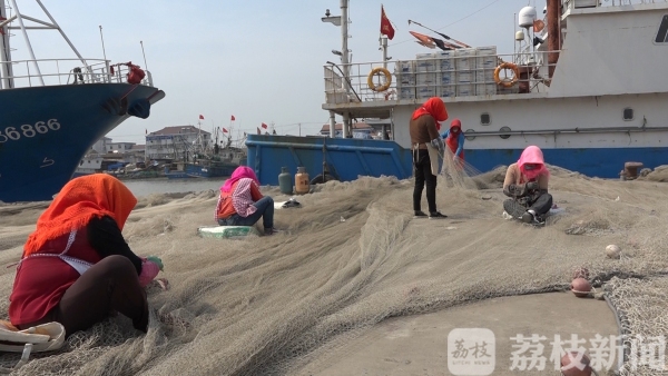 4月30日下午3点多钟,在国家一级中心渔港的射阳县黄沙港镇境内,黄沙河闸港、利民河闸港和运棉河闸港的码头上已经停满了悬挂国旗的渔船,渔船上的渔民正在搬运、整理网具,并将整理好的网具装进蛇皮口袋,然后装车。来自连云港赣榆县的渔民侯传高告诉记者,这次渔船进港后暂时不出海了,因为明天就是禁捕期了,现在把这些网具打包装运回赣榆老家,进行修补整理,等到休渔期结束再出去,现在不能出去捕子孙鱼了。