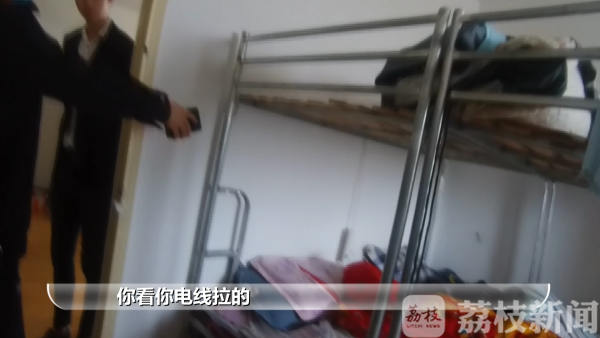 床铺上电线私拉乱接,安全隐患很大。两处群租房,一个90平米住了20个人,一个120平米挤下32个人,人均面积都仅为4平米左右。