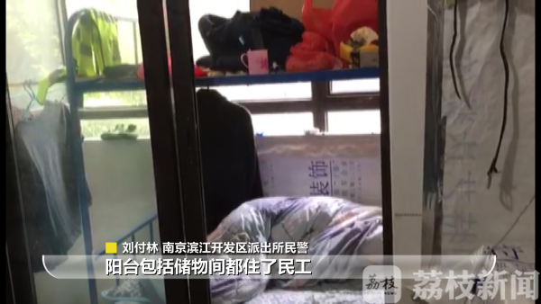 民警打开门发现,群租房里床铺见缝插针地排列,拥挤不堪,连储藏间、阳台都塞上了床住了人。