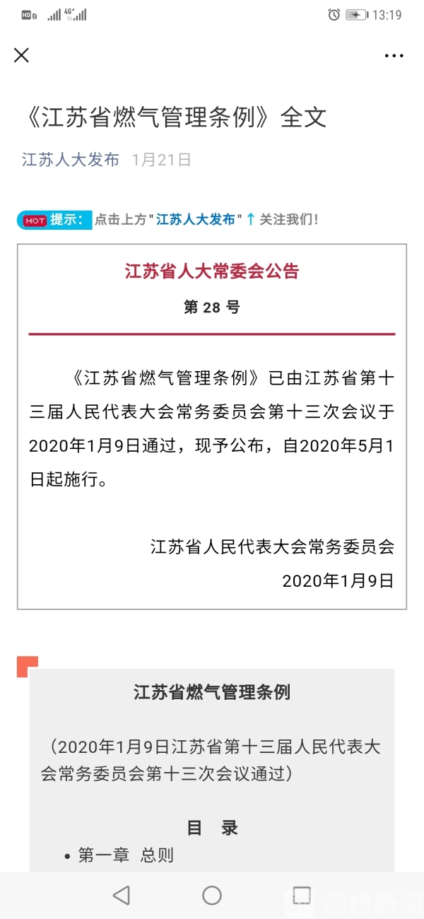 燃气是现代城市必不可少的能源之一,与城市经济和人民生活密切相关。新修订的《江苏省燃气管理条例》自2020年5月1日起施行。根据新修订的《条例》,将取消个体经营瓶装燃气,推行瓶装燃气实名制销售。那么,市场的情况如何呢?