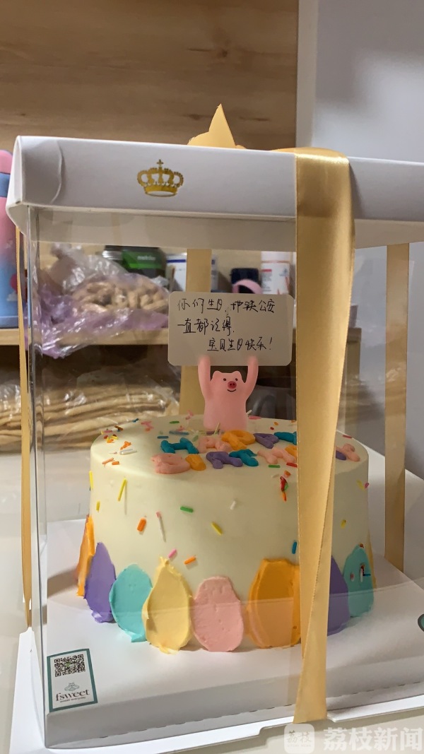 今年,警察蜀黍也记得了她的生日,由于疫情防控的原因,没能把她邀请到站上。他们提前订好了生日蛋糕,在五一劳动节的当天送到了余女士的家里,并在蛋糕上写下:“你的生日,地铁公安一直都记得,宝贝生日快乐!”祝福余女士的宝宝茁壮成长。