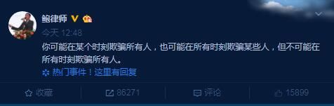 荔枝新闻讯 5月1日中午,一微博认证为中美执业律师,新闻集团NDS中国法务负责人/北京泰德律师所合伙人的ID@鲍律师,发布微博称:“你可能在某个时刻欺骗所有人,也可能在所有时刻欺骗某些人,但不可能在所有时刻欺骗所有人。”下午5时,鲍律师再度发布长文“十问韩某”。 该ID被认为是“烟台上市公司高管涉嫌性侵养女”一案的当事人鲍毓明。