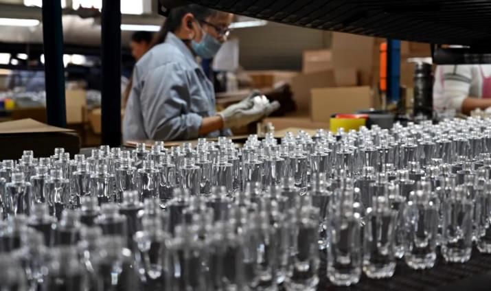 走进三和伟业玻璃制品有限公司,忙碌的生产线上,香水瓶、膏霜瓶、乳液瓶等各种各样的化妆品玻璃瓶让人眼花缭乱。企业负责人说,他们是棋盘镇第一家专业生产高端玻璃制品的企业,已经有15年历史了。